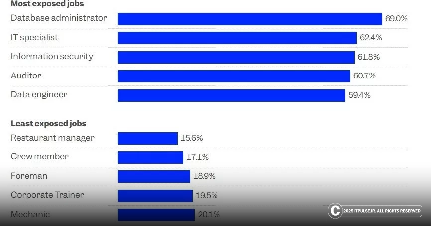 - مشاغل با بیشترین تأثیرپذیری از AI (مانند مهندسان داده، مدیران پایگاهداده و متخصصان امنیت اطلاعات)