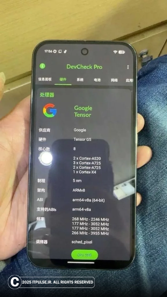 براساس اطلاعات غیررسمی، پیکسل 10 پرو به تراشه جدید Tensor G5 مجهز خواهد بود. این پردازنده شامل ترکیب زیر است: