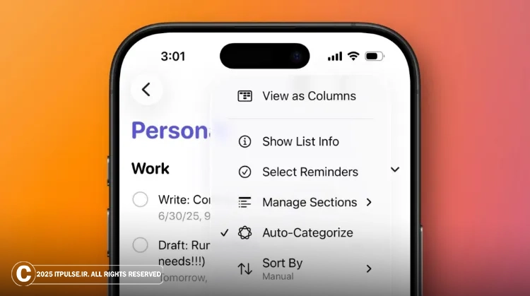 Reminders حالا میتواند بهطور خودکار بر اساس پیامها یا ایمیلهای دریافتی، وظایف، یادآورها یا لیست خرید را پیشنهاد دهد و آنها را در دستهبندیهای مناسب قرار دهد. این ویژگی کمک میکند تا مدیریت وظایف با حداقل تلاش انجام شود.