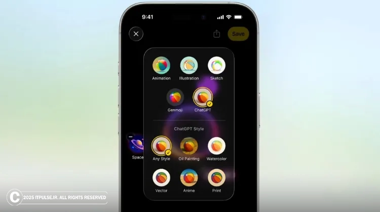 ویژگی Genmoji به کاربران اجازه میدهد با ترکیب چند ایموجی یا توصیف متنی، شکلکهای کاملاً شخصیسازیشده تولید کنند. همچنین در Image Playground میتوان تصاویر دلخواه را با سبکهایی مانند انیمه، وکتور، آبرنگ و … ساخت. ظاهر Genmoji را نیز میتوان به چهره دوستان و اعضای خانواده شبیه کرد.