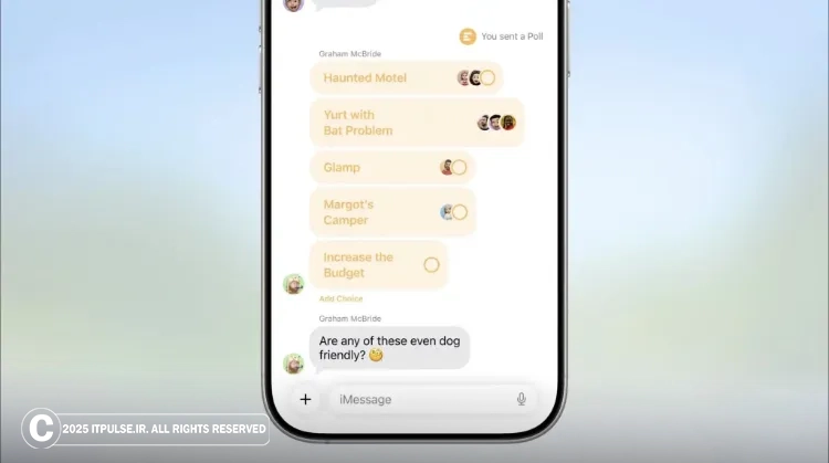 Messages اکنون امکان ساخت نظرسنجیهای هوشمند را با پیشنهاد گزینهها از طریق هوش مصنوعی فراهم کرده و قابلیت تولید پسزمینههای شخصیسازیشده را به گفتگوها افزوده است. این ویژگیها گفتوگوها را زندهتر و تعاملیتر میکنند.