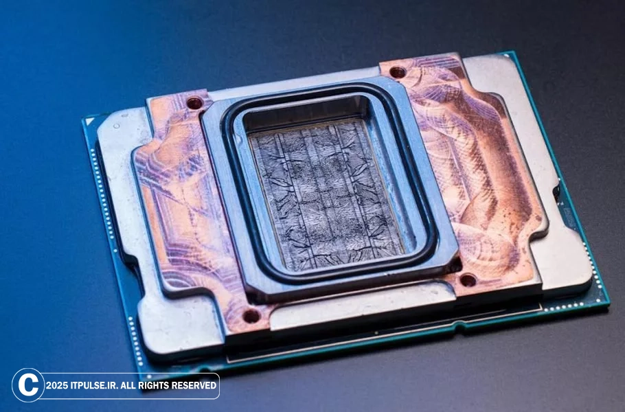 - کانالهای حکشده: کانالهای ریز (به اندازه مو انسان) مستقیماً روی پشت تراشه حک میشوند، که مایع خنککننده را به منبع گرما (سیلیکون GPU) میرساند.