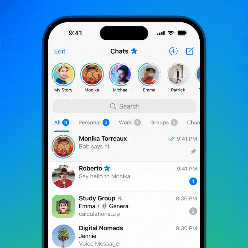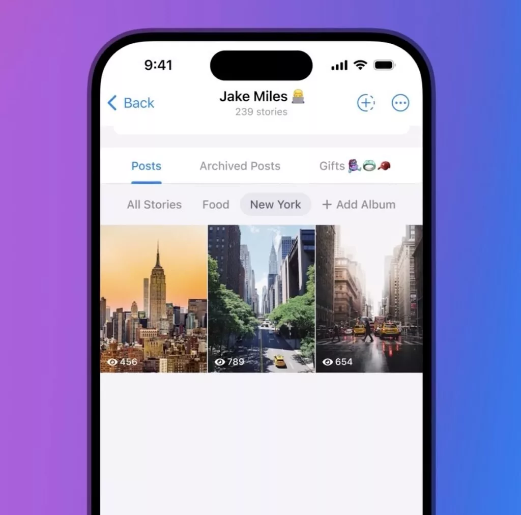 یکی دیگر از ویژگیهای جدید تلگرام، قابلیت ساخت آلبوم برای استوریهاست. کاربران میتوانند استوریهای منتخب خود را در مجموعههایی مشخص دستهبندی کنند و آنها را بهصورت دائمی در پروفایلشان نمایش دهند. این ویژگی شباهت زیادی به هایلایت در اینستاگرام دارد و برای کسبوکارها نیز جهت نمایش محصولات یا خدمات دستهبندیشده بسیار مفید خواهد بود.