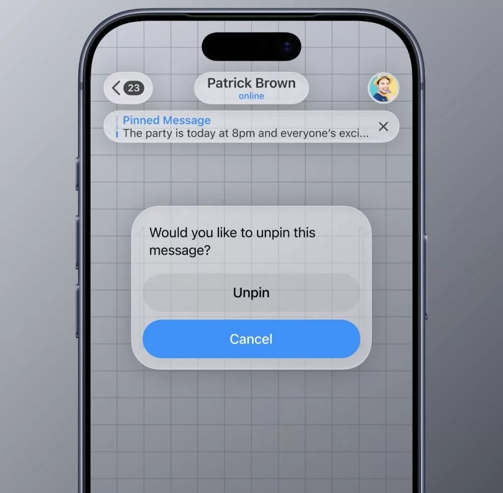 - شفافیت کامل: از نوار وضعیت (Status Bar) تا نام مخاطب و پسزمینه چتها، همگی از افکتهای شکست نور پیشرفته بهره میبرند.
